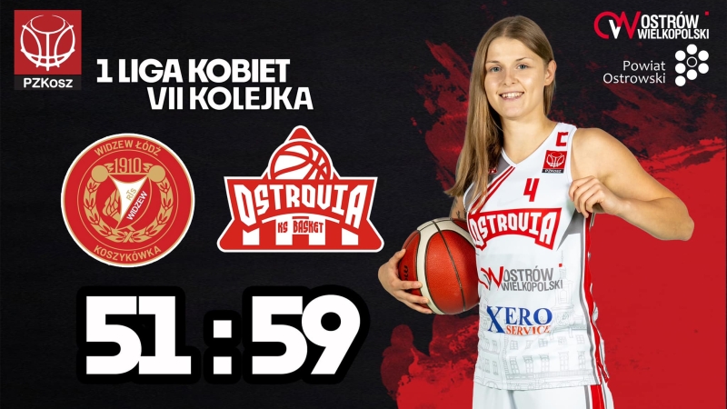 Koszykarki Basket Ostrovii odniosły pierwsze wyjazdowe zwycięstwo w I lidze pokonując w Łodzi Widzew 59:51.