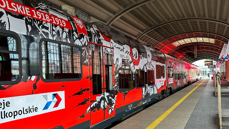 Punktualnie o godzinie 11:00 rozpoczęła się uroczysta prezentacja pojazdu Kolei Wielkopolskich, który został oklejony historycznymi scenami z Powstania Wielkopolskiego. – Ten wyjątkowy projekt jest hołdem dla historii regionu, łącząc nowoczesność z naszym dziedzictwem – ocenił Wojciech Jankowiak, Wicemarszałek Województwa Wielkopolskiego – Pociąg będzie jeździł przez cały rok po wielkopolskich torach, niosąc ducha bohaterów z tamtego okresu. To nie tylko środek transportu, ale pewnego rodzaju mobilne muzeum, które przypomina o ważnych wydarzeniach z historii i kultywuje pamięć o bohaterach Wielkopolski – dodaje. Na zewnętrznych ścianach pojazdu znajdują się wielkoformatowe ilustracje, przedstawiające kluczowe momenty z Powstania Wielkopolskiego. Każda scena została starannie odwzorowana, oddając ducha i atmosferę tamtych dni. Widoczne są bohaterskie czyny mieszkańców Wielkopolski, najważniejsze postacie, ich jedność i determinacja w walce o niepodległość. – Wierzymy, że nasza inicjatywa zachęci do refleksji nad historią regionu – mówi Marek Nitkowski, Prezes Zarządu Spółki Koleje Wielkopolskie. – Pragniemy, aby podróżując naszym pojazdem, pasażerowie odkrywali nie tylko nowoczesność, ale również korzenie, które ukształtowały współczesną Wielkopolskę. Kultywowanie historii pomaga zachować pamięć o ważnych wydarzeniach i dlatego już dzisiaj pragnę zaprosić do udziału inscenizacji przyjazdu Ignacego Jana Paderewskiego do Poznania w przeddzień wybuchu Powstania Wielkopolskiego. Warto przyjechać na Dworzec Letni 26 grudnia o godzinie 16:00 i wspólnie przeżywać ten wyjątkowy moment. Dzisiaj natomiast cieszymy się, że pojazd z powstańczą okleiną, tak bardzo podoba się publiczności. - dodaje.