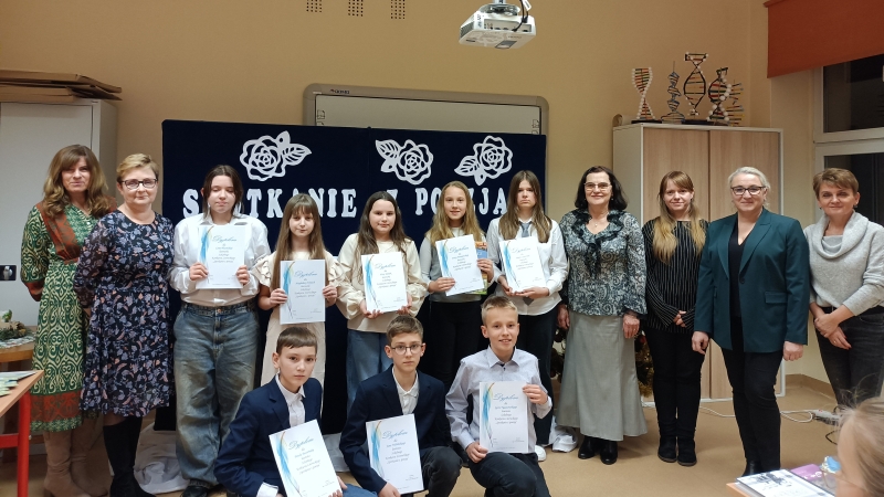 Podczas spotkania nastąpiło rozstrzygnięcie Szkolnego Konkursu Poetyckiego. Poetka Eugenia Zawidzka z uwagą wysłuchała utworów napisanych przez młodzież stwierdzając, iż jest pod dużym wrażeniem talentu uczniów Szkoły Podstawowej nr 7. Nagrody ufundowane zostały przez Radę Rodziców, a wręczone przez Eugenię Zawidzką, wicedyrektor szkoły Małgorzatę Mizerną oraz członka jury Joannę Dryjańską. Organizatorkami wieczornicy były Elżbieta Bachorska, Violetta Lebda i Joanna Dryjańska.