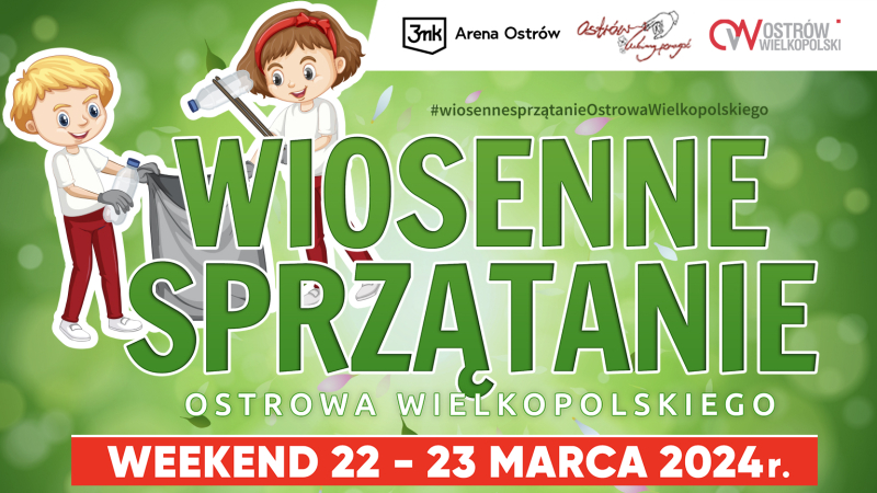 Po raz kolejny mieszkańcy Ostrowa Wielkopolskiego będą wspólnie sprzątać miasto. To akcja, która na stałe wpisała się w kalendarz wydarzeń. Każdego roku uczestniczą w niej tysiące osób – dorośli, dzieci, rodziny, samorządowcy, dziennikarze, sportowcy, harcerze, ratownicy wodni. Każdemu przyświeca jeden cel i wspólne dobro – czyste miasto. Tegoroczna akcja sprzątania Ostrowa Wielkopolskiego odbędzie się 22 - 23 marca.