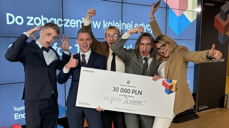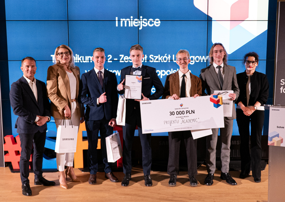 Projekt „Akademic” okazał się bezkonkurencyjny i głosami jury zajął I miejsce. Podczas Wielkiej Gali Solve For Tomorrow zespół wraz z opiekunką odebrali z rąk szefa Samsung Electronics Polska Pana Conora Pierca oraz ESG Manager Samsung Electronicis Polska Pani Magdaleny Olborskiej nagrody ufundowane przez organizatora. Nagroda w postaci ekranu Samsung Flip Pro trafi również do Zespołu Szkół Usługowych.