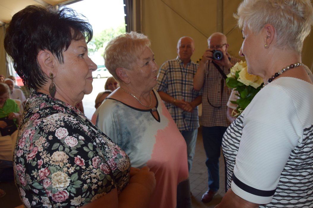 W atmosferze aplauzu całej sali Regina Banaszak, przewodnicząca Samorządu Słuchaczy, w towarzystwie członków Zarządu – Stefanii Frencel i Stanisława Kawińskiego - podziękowała Aleksandrze Biegańskiej za skuteczne i konstruktywne kierowanie ostrowskim uniwersytetem w roku akademickim 2023/2024. W dowód wdzięczności wręczyła jej od słuchaczy Uniwersytetu piękny bukiet kwiatów życząc zdrowia, wytrwałości i powodzenia w życiu społecznym i osobistym.