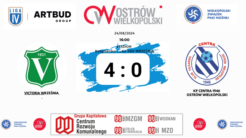 Słaba dyskozycja piłkarzy Centry jaką prezentowali w rundzie wiosennej ma swoją kontynuację w nowym sezonie. Ostrowianie ponieśli klęskę w wyjazdowym meczu z Victorią Września i po pięciu kolejkach mają w dorobku zaledwie 1 punkt i dzierżąc "czerwoną latarnię" Artbud Group IV Ligi wespół z zespołem ze Ślesina, z którym Centra podzieliła się punktami w pierwszej kolejce.