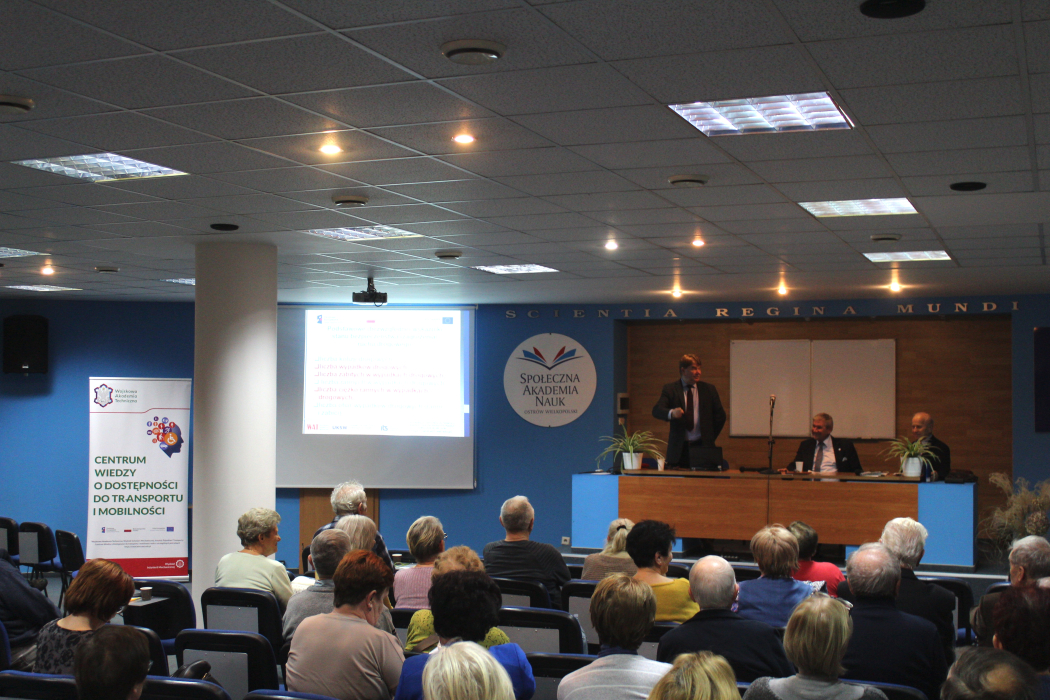 Prof. Mirosław Gidlewski wyraził zadowolenie z nawiązania współpracy z ostrowskimi seniorami ze środowiska uniwersyteckiego. Przybliżając im ten temat wyraził przekonanie, że to dobry początek na rozwinięcie stałego współdziałania. W swoim wykładzie zwrócił szczególną uwagę na wiek uczestnika ruchu drogowego a zagrożenia wypadkowe i ich skutki oraz przyczyny, przebieg i skutki wypadków drogowych, których sprawcami są seniorzy. Ponadto na możliwości zwiększenia ochrony kierowców i pasażerów w czasie zaistnienia wypadku drogowego oraz na urządzenia i systemy bezpieczeństwa czynnego w samochodach wspomagające pasywnie i aktywnie kierowcę przydatne seniorom. Jednocześnie omówił dobre praktyki ukierunkowane na wzrost mobilności osób starszych, ze szczególnym zwróceniem uwagi na przejazd przez skrzyżowanie, przejazd przez przejście dla pieszych i jazdę w kolumnie. Z dużym zaciekawieniem przyjęto przeprowadzone przez niego symulacje w ruchu drogowym oraz informację, jak korzystać z pomocy Centrum Wiedzy o Dostępności (CWOD) w życiu codziennym.