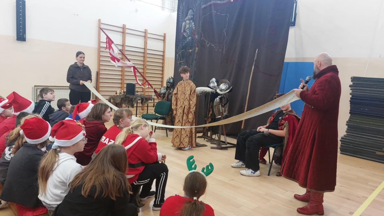 W ramach projektu „Pamiętamy o bohaterach” młodzież ze Szkoły Podstawowej im. św. Jana Pawła II w Radłowie uczestniczyła w żywej lekcji historii. Zajęcia pod tytułem "Szable w dłoń!", które odbyły się w piątek 6 grudnia 2024 r., poświęcone były husarii i Rzeczpospolitej Obojga Narodów.