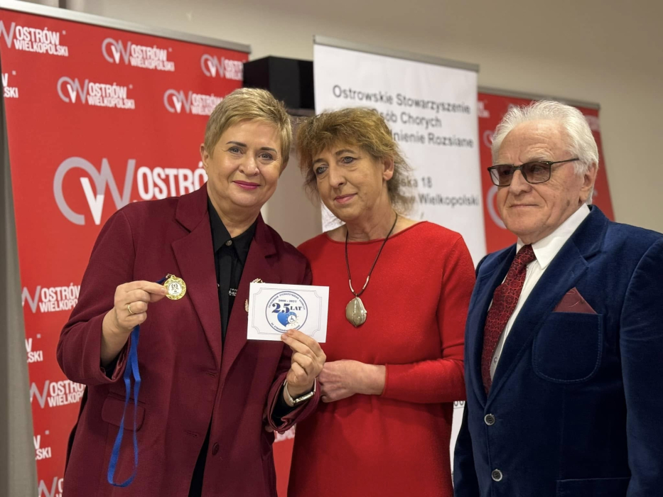 Wiele ciepłych i serdecznych słów wraz z gratulacjami z okazji jubileuszu 25-lecia działalności skierowali do członków Ostrowskiego Stowarzyszenia Chorych na Stwardnienie Rozsiane Beata Klimek, Mirosław Rychlik i Kazimierz Nawrocki. Zwrócili uwagę, że Stowarzyszenie to wyjątkowy przykład, jak determinacja, empatia i współpraca mogą zmieniać życie osób dotkniętych chorobą oraz ich bliskich. Wyrazili podziw dla faktu, jak w ciągu ćwierćwiecza swojej działalności zbudowano wspólnotę, która łączy, wspiera i daje nadzieję. Życzyli członkom stowarzyszenia niegasnącej energii i pasji, sukcesów w realizacji kolejnych przedsięwzięć oraz zdrowia i pomyślności każdemu z osobna. Niech kolejne lata Waszej działalności – podkreślali – przynoszą jeszcze więcej dobra, a każdy dzień wypełniają miłość, wiara i wspólna radość.
