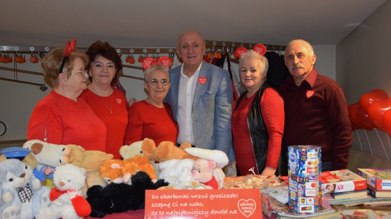 Wychodząc z założenia, że WOŚP jednoczy ludzi, Zarząd OUTW, poza zachęcaniem seniorów do udziału w organizowanych w mieście imprezach, aukcjach i licytacjach, włączył się w zorganizowanie w Ostrowskim Centrum Kultury pod przewodnictwem Ewy Skibińskiej stoiska, przy którym każdy kto przekazał do puszek pieniądze dla WOŚP otrzymał paczuszkę z doskonałej jakości anyżkami. Wszystkich odwiedzających stoisko ostrowskiego uniwersytetu witało wymowne w swej treści hasło: Do skarbonki wrzuć grosiczek! Szepnę Ci na ucho, że to najpiękniejszy dowód na Wielkie Serducho! Najmłodszym osobom grającym z Orkiestrą w towarzystwie rodziców i dziadków wiele radości sprawiały wręczane im czerwone baloniki w kształcie serca, różnokolorowe maskotki z serduszkiem, w tym książki dla dzieci i dorosłych, puzzle, gry planszowe, płyty i atrakcyjne pluszowe zabawki dla najmłodszych. To w znacznej mierze dzięki słuchaczom OUTW, którzy wzbogacili stoisko licznymi eksponatami, w tym barwnymi wyrobami rękodzielniczymi oraz darczyńcom, którzy przekazali uniwersytetowi na ten cel ciasteczka, balony, unikatowe koszulki i inne oryginalne przedmioty. Było gwarno i wesoło. Można było zauważyć, że grający z WOŚP ostrowianie są zawsze uśmiechnięci, pozytywnie nastawieni do drugiego człowieka i w pełni zaangażowani w służeniu pomocą innym. Wszędzie dominowały kultowe już czerwone serduszka. Nie brakowało emocji, zachwytu, sympatycznych gestów i dobrych słów, po prostu ogólnej radości i ciepła, jakie zawierają takie akcje charytatywne. Do tego słychać było głosy: Serduszek ubywa, pieniędzy przybywa. Wszystkim towarzyszył znakomity nastrój, dobry humor i pozytywna energia.