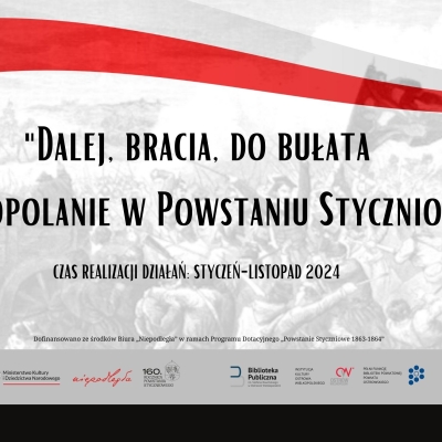 Mediateka Przystanek Kultury - filia Biblioteki Publicznej w Ostrowie organizuje projekt związany z pamięcią o Powstaniu Styczniowym „Dalej, bracia, do bułata – wielkopolanie w Powstaniu Styczniowym”. Biblioteka pełniąca również funkcję biblioteki powiatowej Powiatu Ostrowskiego przygotowała z tej okazji kilka ciekawych wydarzeń.