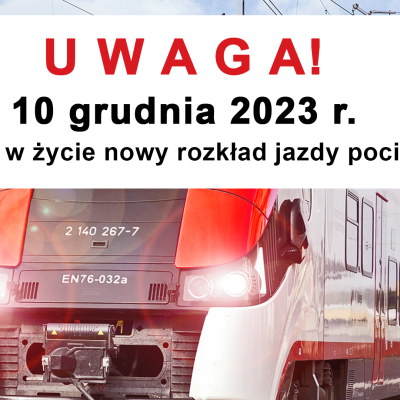 10 grudnia 2023 r. wchodzi w życie nowy rozkład jazdy pociągów. Poniżej prezentujemy najważniejsze zmiany: