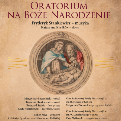 Filharmonia Kaliska ma zaszczyt zaprosić na koncert, podczas którego wspaniała obsada artystyczna wykona Oratorium Na Boże Narodzenie kaliskiego kompozytora Fryderyka Stankiewicza do słów Katarzyny Kryśków.