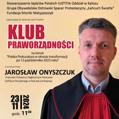Ostrowski Spacer Protestacyjny oraz Stowarzyszenie Sędziów Polskich Iustitia i Fundacja Moniki Matyaszczyk zapraszają na spotkanie z prokuratorem Jarosławem Onyszczukiem.