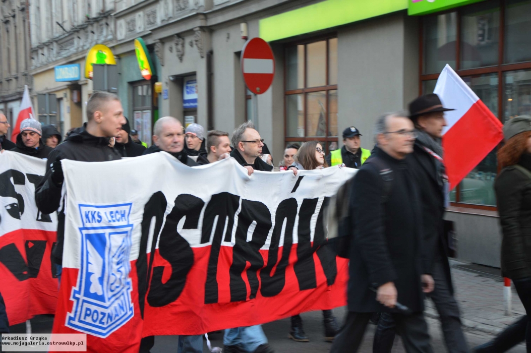 Kulminacją tego dnia był Marsz Pamięci ulicami miasta w asyście grup rekonstrukcyjnych oraz orkiestry dętej. W marszu jak można zobaczyć na zdjęciach, udział brały osoby w różnym wieku, jednak chyba najliczniejszą grupę stanowiły osoby związane z ruchem kibicowskim, którzy zapewniali, odpowiedni nastrój marszu niosąc podobizny żołnierzy walczących o niepodległość Polski. Oczywiście chyba w związku z tym cały marsz był zabezpieczany przez funkcjonariuszy Policji oraz Straży Miejskiej, którzy również postanowili nakręcić film z tego wydarzenia, jednak chyba tylko niestety w jednym momencie tej uroczystości.