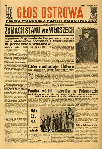Ukazał się w Ostrowie Wielkopolskim ostatni numer dziennika „Głos Ostrowa”, pisma Polskiej Partii Robotniczej